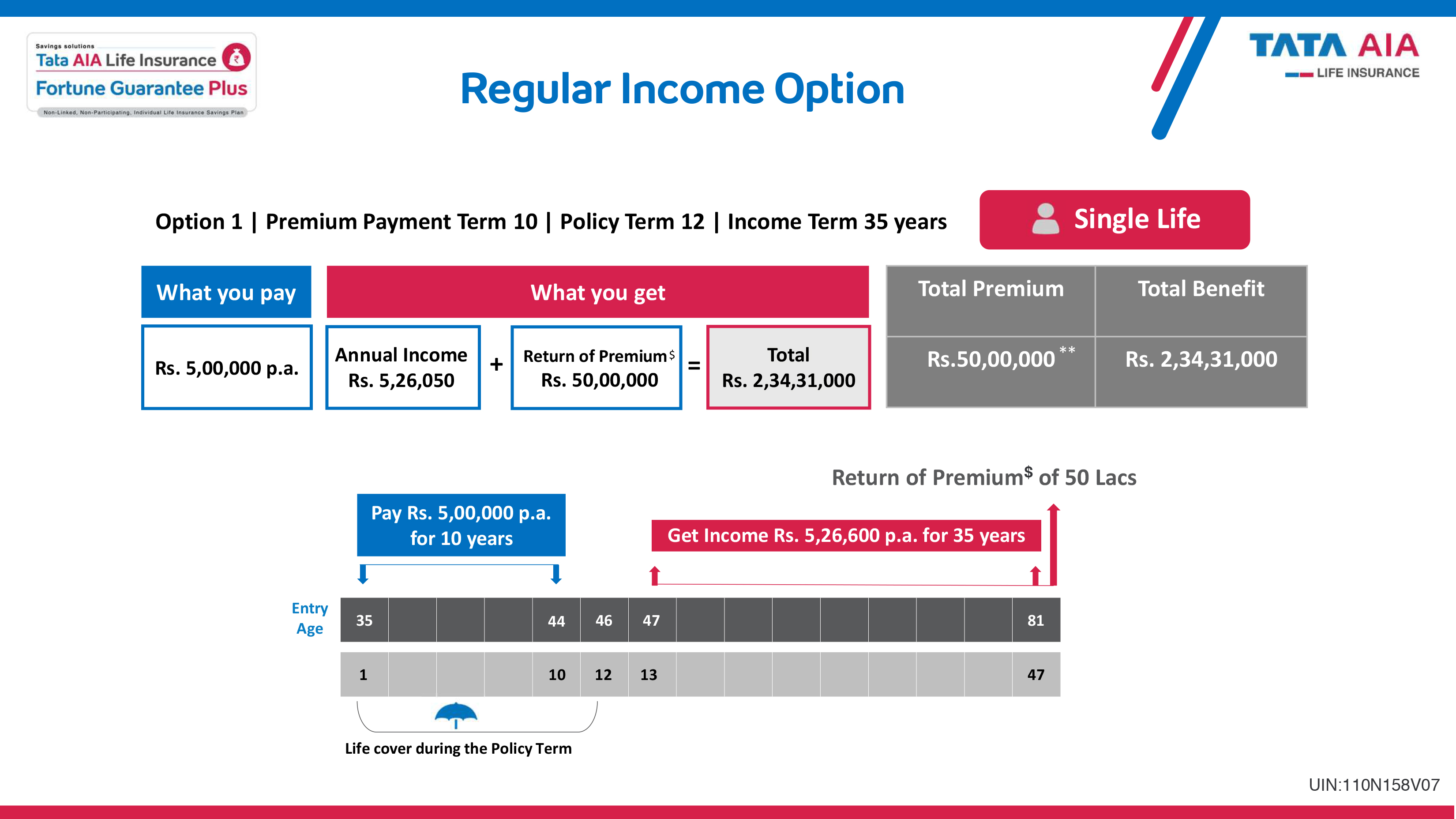 Tata AIA Life Insurance Fortune Guarantee Plus (Individual, Non-Linked, Non-Participating, Life Insurance Savings Plan) • UIN: 110N158V07