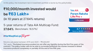 Param Raksha Life Pro + comprises of comprehensive life insurance coverage with market-linked returns12 boosted by the Wellness Program under Tata AIA Vitality7.
