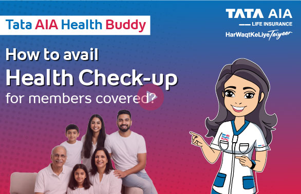 Tata AIA Health Buddy comprises of Health Management Services which are complimentary services in the areas of prediction, prevention, diagnosis, treatment or recovery which may include services such as medical consultation, coaching, second opinion, personal medical case management with the objective of health management and improvement. Benefits including Health Management Services or any discounts are available to eligible customers of Tata AIA Life Insurance. It is the customer’s sole discretion to avail the services and to follow the treatment path suggested by the Service Providers. All medical-related services will be directly provided by the Service Providers and not by Tata AIA Life Insurance. It is available only for Life Insured of active policies for select product/riders. Availing this feature grants permission to service providers to contact the customer about these Health Management Services. These services shall be subject to the availability of the Service Provider. Tata AIA Life Insurance shall not be liable for any liability arising due to customer opting to avail this feature from the Service Providers.