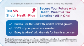 Introducing Tata AIA Shubh Health Plus, a unique health plan designed to beat the rising medical inflation and all future uncertainties. This plan offers market-linked returns1 with 100% of premiums invested to generate a health fund for medical needs.