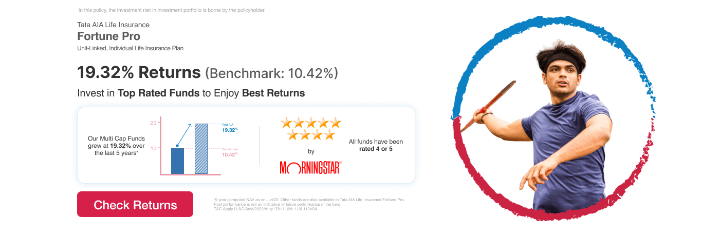 • Tata AIA Life Insurance Company Limited is only the name of the Insurance Company & Tata AIA Life Insurance Fortune Pro is only the name of the Unit Linked Life Insurance contract and does not in any way indicate the quality of the contract, its future prospects or returns.