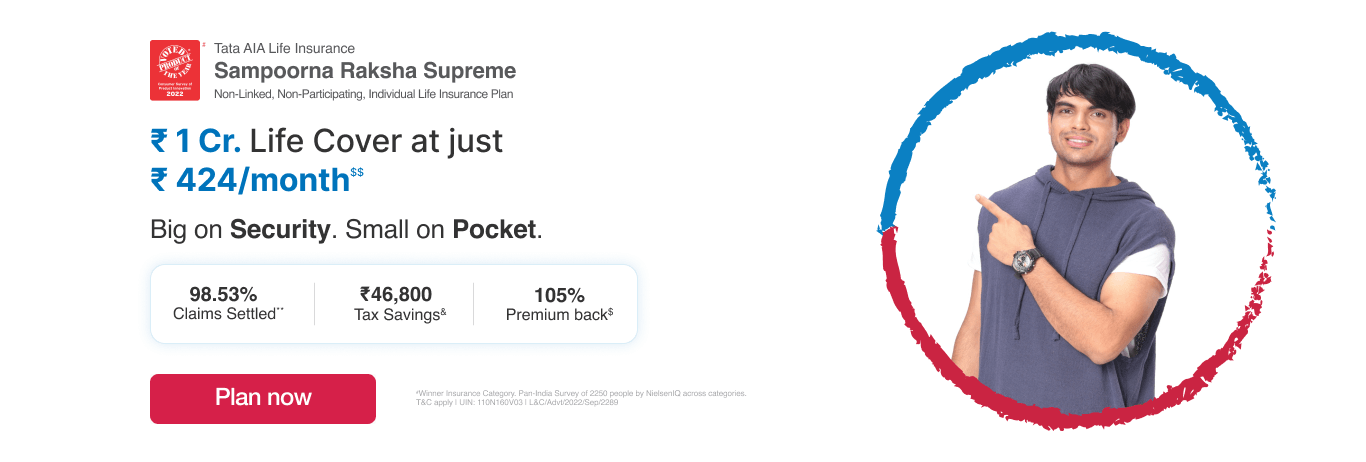 • The complete name of Tata AIA Sampoorna Raksha Supreme is Tata AIA Life Insurance Sampoorna Raksha Supreme (UIN:110N160V03) - A Non-Linked Non-Participating Individual Life Insurance Plan