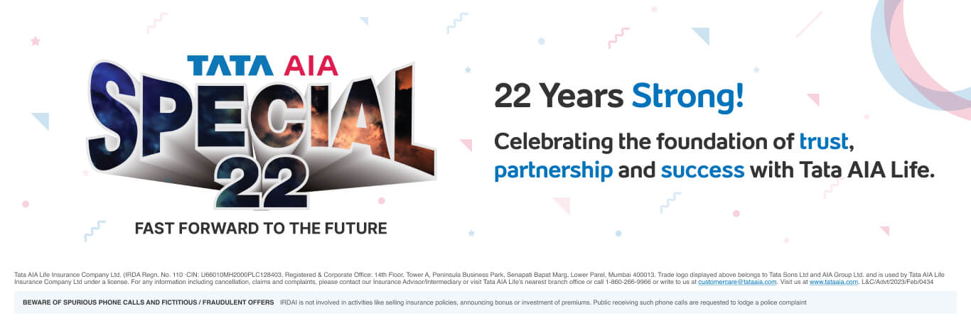 • ~Income Tax benefits would be available as per the prevailing income tax laws, subject to fulfillment of conditions stipulated therein. Income Tax laws are subject to change from time to time. Tata AIA Life Insurance Company Ltd. does not assume responsibility on tax implications mentioned anywhere on this site. Please consult your own tax consultant to know the tax benefits available to you.